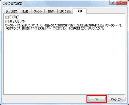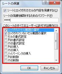 セルのロックを解除した後で、シートの保護を設定します。手順.3に進みます。