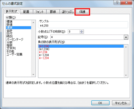 「保護」タブをクリックします。