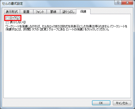 - セルのロックを解除します。