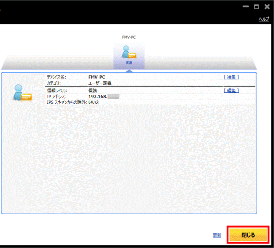 許可するアクセス先のIPアドレス(または、MACアドレス)を複数登録する場合は、手順11.〜手順14.を繰り返します。「閉じる」ボタンをクリックし、「ネットワークセキュリティマップ」を閉じます。