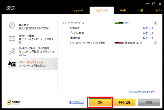 [Norton Internet Security] ファイアウォール機能でアクセスが制御されているプログラムを確認する方法を教えてください。(2012年10月発表モデル〜2013年2月発表モデル)(新しいウィンドウで表示)