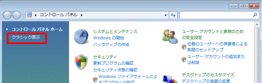 アドバイス「アクセスランプオフ設定」が見つからない場合は、画面左側にある「クラシック表示」をクリックします。