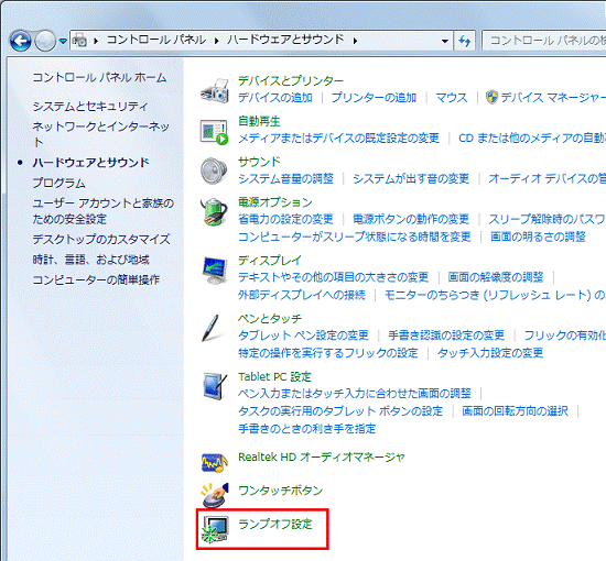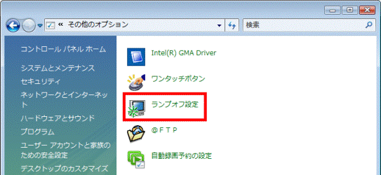 パソコンが再起動します。 - 「ランプオフ設定」を開きます。