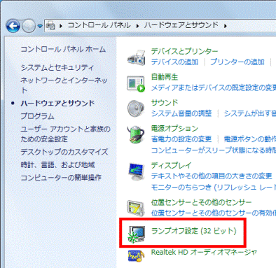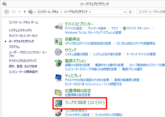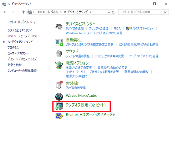「ランプオフ設定(32ビット)」をクリックします。