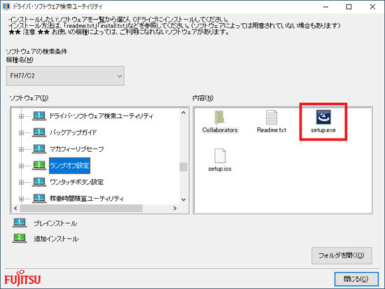 - 「内容」欄の「setup.exe」アイコンをダブルクリックします。
