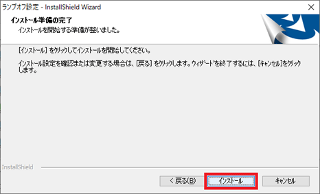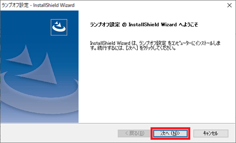 - 「ランプオフ設定 の InstallShild Wizard へようこそ」と表示されます。