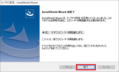 - 「InstallShild Wizard の完了」と表示されます。