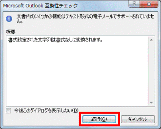 - 「Microsoft Outlook 互換性チェック」が表示された場合は、「続行」ボタンをクリックします。