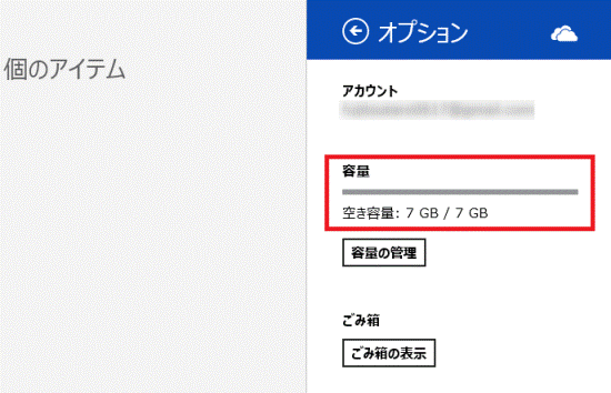 [Windows 8.1/8] OneDrive(SkyDrive)の空き容量を確認する方法を教えてください。