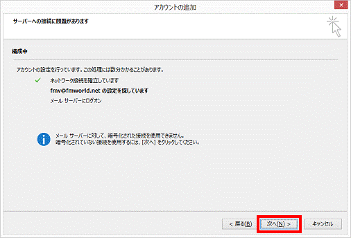 「アカウント設定を変更する」をクリックしチェックを付けてから、「次へ」ボタンをクリックします。