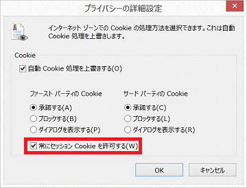 - 「OK」ボタンをクリックし、「プライバシーの詳細設定」を閉じます。