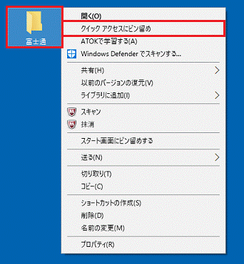 クイックアクセスにフォルダーを追加する
