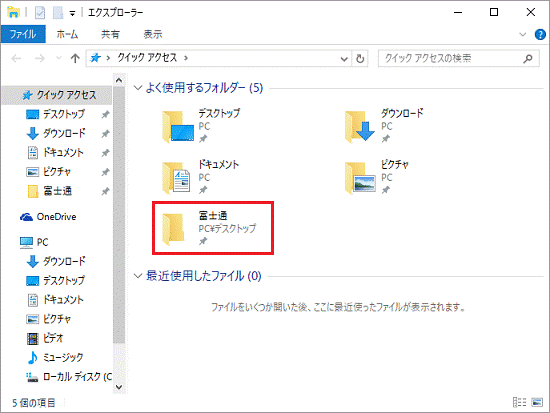 - 「よく使用するフォルダー」に、ピン留めしたフォルダーが表示されたことを確認します。