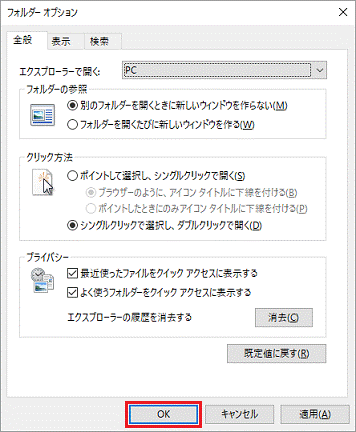 - 「OK」ボタンをクリックし、フォルダーオプションを閉じます。