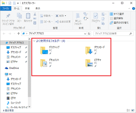 クイックアクセスには、「よく使用するフォルダー」と「最近使用したファイル」が表示され、フォルダーをピン留めして追加することもできます。