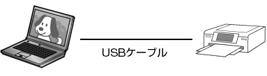プリンターとパソコンのUSBコネクタを、USBケーブルで接続します。