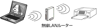 無線LANルーターなど、機器やケーブルを使わずに、プリンターとパソコンを接続できます。