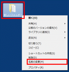 ファイルやフォルダーを右クリックして表示されるメニューから、名前を変更します。