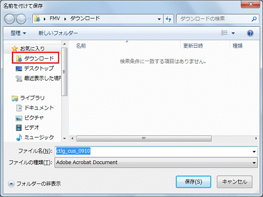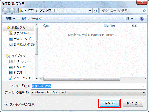 ご購入時の設定では、「C:¥Users¥(ユーザー名)¥Downloads」フォルダーに保存します。 - 「保存」ボタンをクリックします。