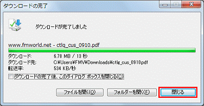 完了するまで、しばらく待ちます。 - 「ダウンロードの完了」と表示されます。