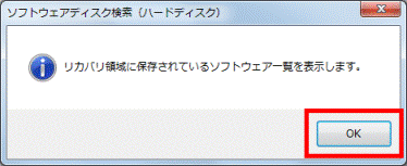 - 「リカバリ領域に保存されているソフトウェア一覧を表示します。」と表示されます。