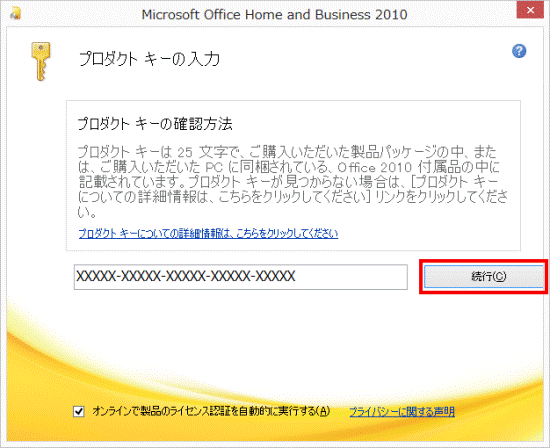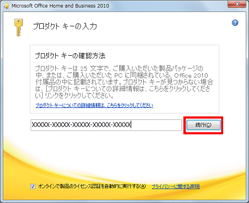 入力欄にプロダクトキーを入力します。