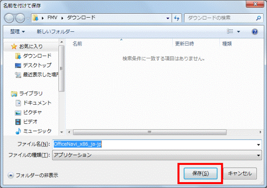 ここでは例として、マイクロソフト社からダウンロードするファイルを、「ダウンロード」フォルダーに保存します。