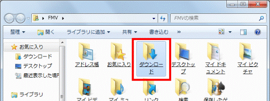 ファイルの保存先を変更している場合は、お気に入りリンクの一覧から、「ダウンロード」をクリックします。