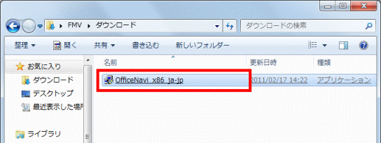 - 「OfficeNavi_x86_ja-jp」(または「OfficeNavi_x86_ja-jp.exe」)をクリックします。