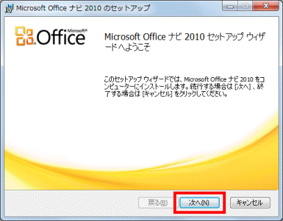 - 「Microsoft Office ナビ 2010 セットアップ ウィザードへようこそ」と表示されます。
