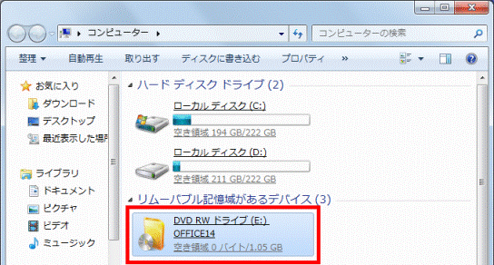 - Microsoft Office 2010のディスクをパソコンにセットします。