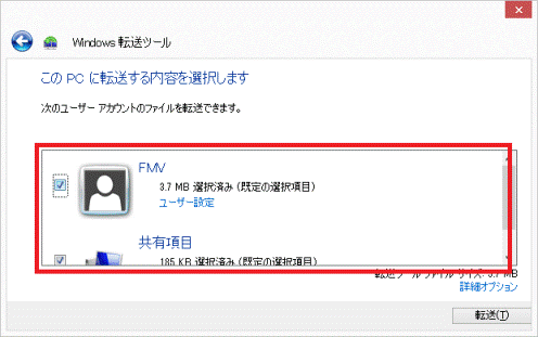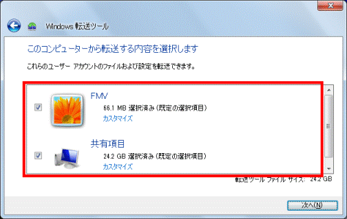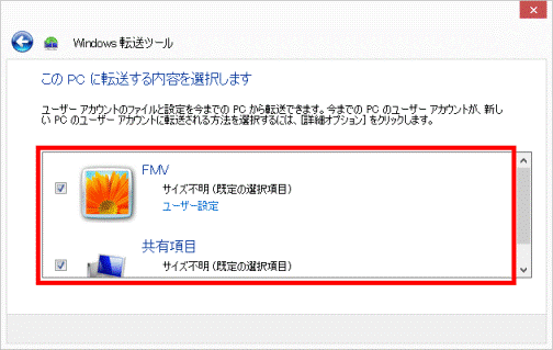 - 「このコンピューター(または、PC)から転送する内容を選択します」と表示されます。