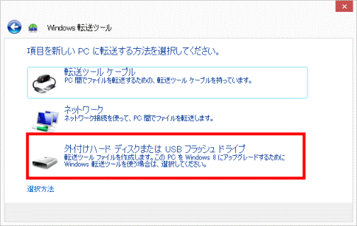 - 「項目を新しいPCに転送する方法を選択してください。」と表示されます。