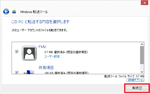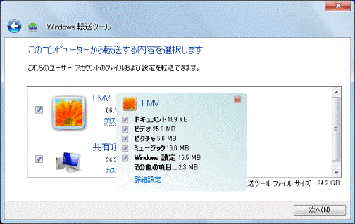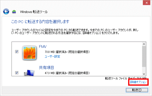 Windows 転送ツールで移行できる内容は、Windows 転送ツールを起動すると確認できます。