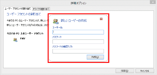- 新しいパソコンに割り当てるユーザーアカウントを新規に作成する場合