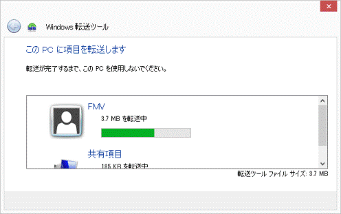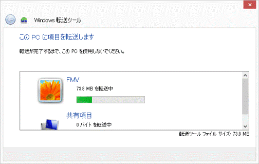 - 「このコンピューター(または、PC)上でのWindows 転送ツールの処理は完了しました。」と表示されます。