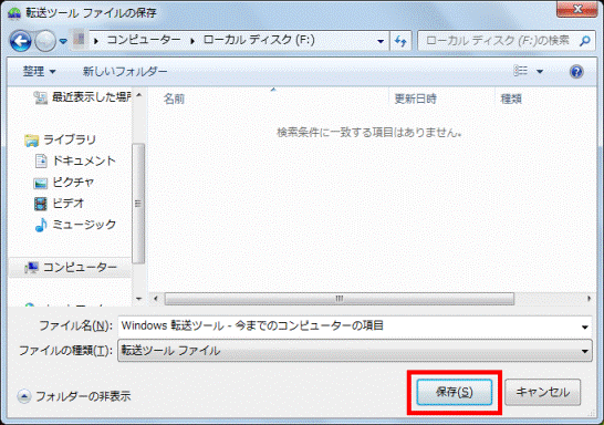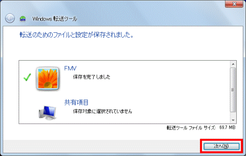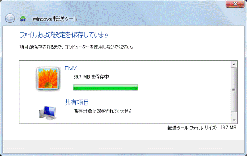 - 「転送するファイルおよび設定を保存します」と表示されます。