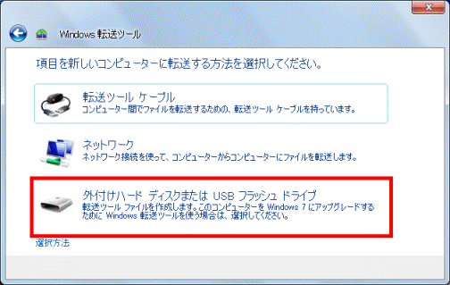 - 「項目を新しいコンピューター(または、PC)に転送する方法を選択してください。」と表示されます。