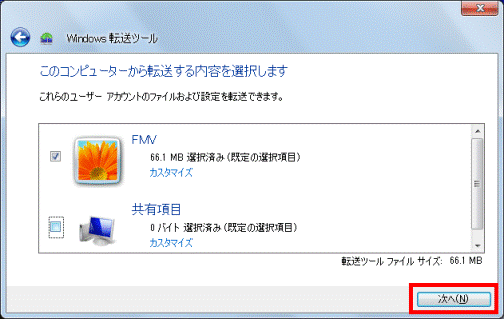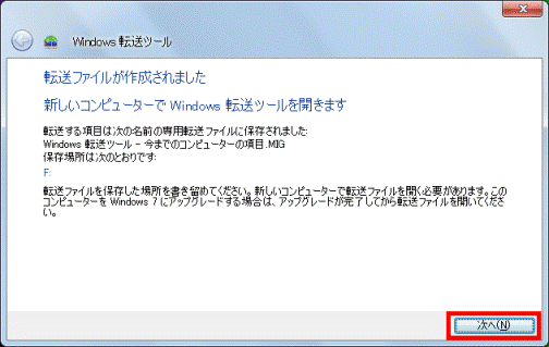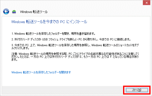 「古いパソコンでWindows 転送ツールを起動する」へ進みます。