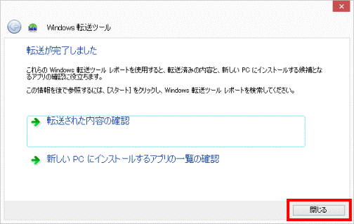「閉じる」ボタンをクリックして、Windows 転送ツールを終了します。