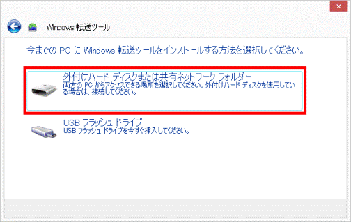 [Windows 8.1/8] 外付けハードディスクを使用して、Windows 転送ツールでパソコンの設定やデータを移行する方法を教えてください。