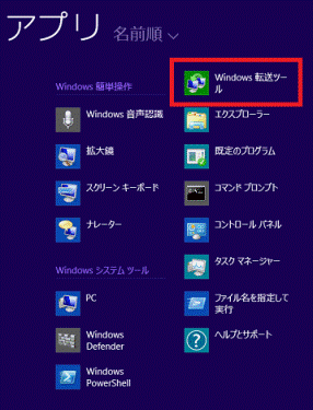「Windows システムツール」にある「Windows 転送ツール」をクリックします