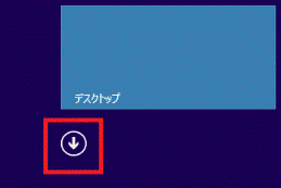 画面の右上にトースト(青い背景のメッセージ)が表示されても、クリックせずに次の手順に進みます。 - スタート画面でマウスポインターを動かし、「↓」ボタンが表示されたら、「↓」ボタンをクリックします。