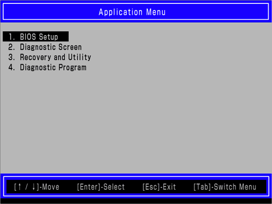 (「Application Menu」が表示された画面の例) - 「起動デバイスを選択してください。」と表示された場合