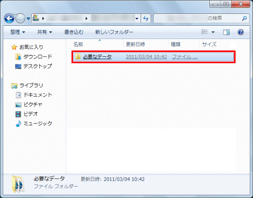 データが正常に保存されていないため、改めて、フォルダーをコピーする必要があります。