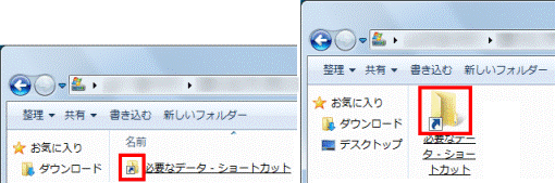 また、ショートカットをコピーしたときは、フォルダーの中のデータはコピーされません。