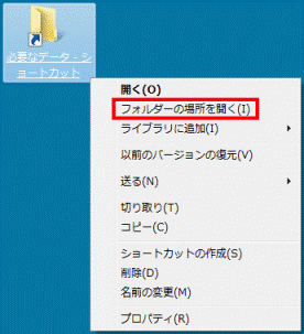 ショートカットアイコンを右クリックし、表示されるメニューから「フォルダーの場所を開く」をクリックして、フォルダーを表示してください。