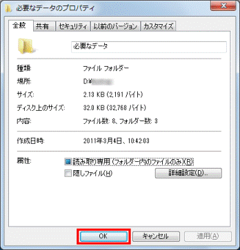 「サイズ」、「内容」を確認します。![[プロパティ] - サイズ、内容を確認](../private/201103/0400000001/029.gif)