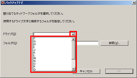 「ドライブ」欄の「▼」ボタンをクリックし、表示される一覧から、任意のドライブをクリックします。