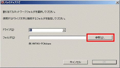 ここでは例として、Nドライブを選択します。 - 「参照」ボタンをクリックします。